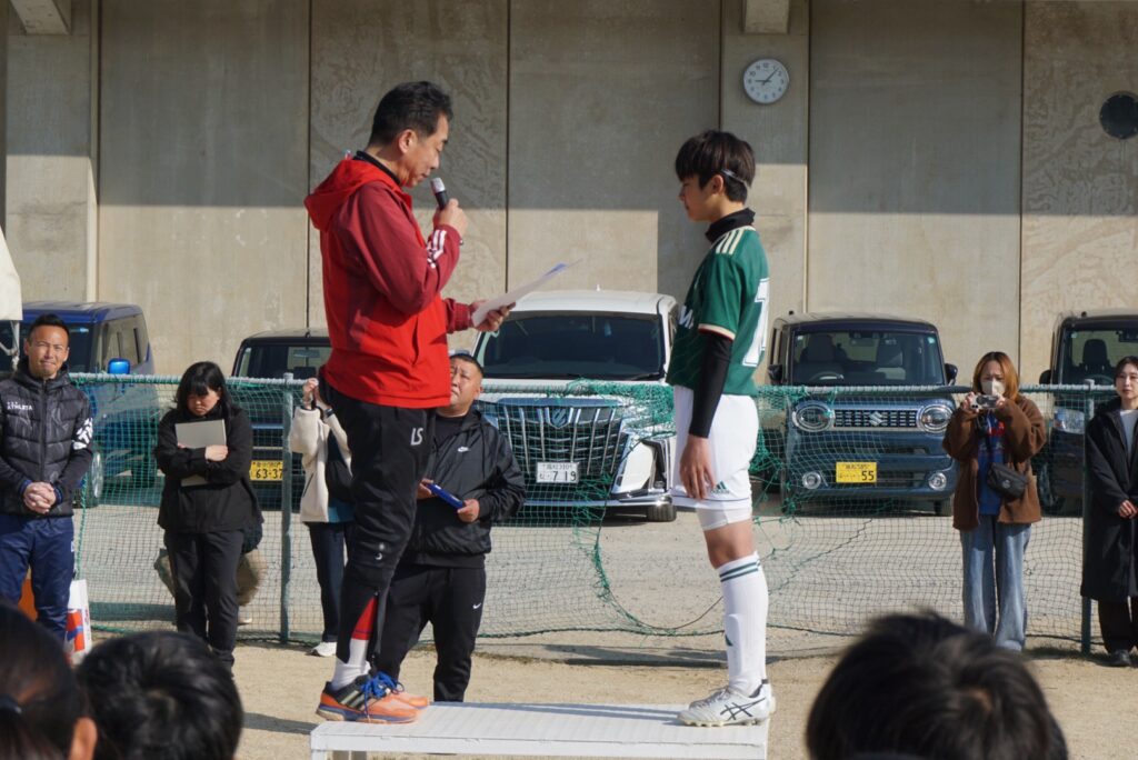 式の前には里石団長よりU10からはじまる『めざせファンタジスタ』の表彰がありました。