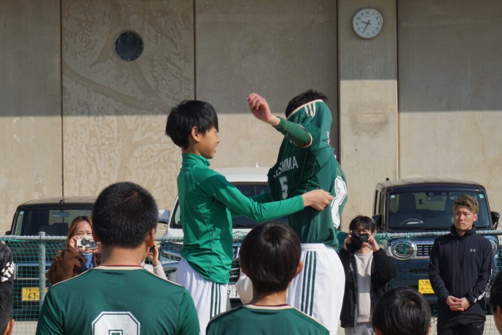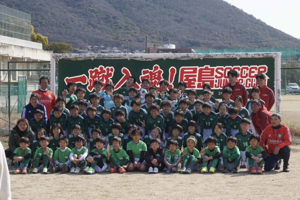 屋島伝統の全日本少年サッカー大会用ユニフォームと意志はしっかりと在団生へ引継がれました。新年度それを着て大会へのぞむことになります。卒団生は団での経験を活かしていただき、次のステージでも頑張ってください!